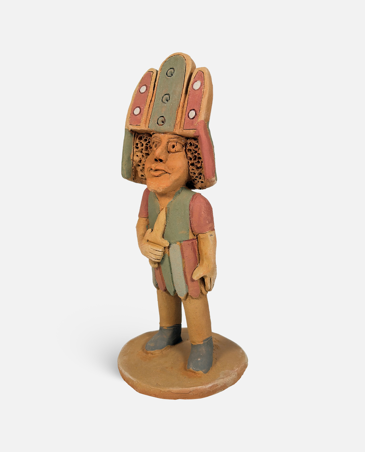 Irailda Palmeira da Silva (1986) encontra nas tradições culturais alagoanas uma fonte inesgotável de inspiração. Entre as manifestações mais emblemáticas da região, destaca-se o Auto dos Guerreiros, em que os brincantes usam majestosos chapéus adornados com espelhos, pedrarias e fitas, cujas formas remetem a igrejas. As vestimentas multicoloridas, somadas à força da música e da encenação, resultam em um espetáculo lúdico reconhecido como Patrimônio Imaterial de Alagoas. Em sua arte, Irailda traduz sua admiração por esse folguedo e por outras celebrações populares, como o Bumba-Meu-Boi e o Reisado.