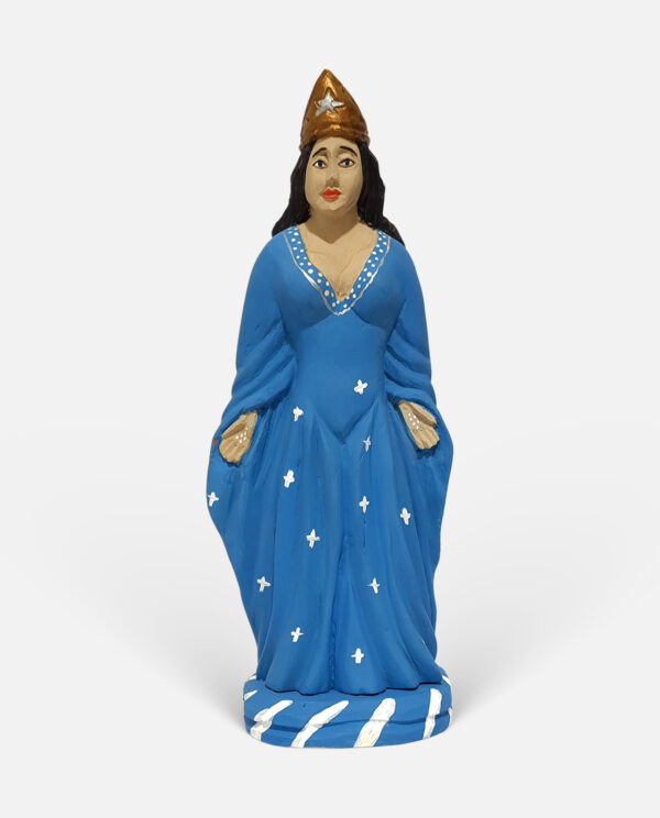 Um dos aspectos mais marcantes do seu trabalho está nos detalhes das vestimentas das figuras sacras, cujas dobras e ondulações parecem desafiar a rigidez da madeira. Essa técnica, que remete a grandes nomes da arte santeira da região, como a Mestra Luzia Dantas, tornou-se uma assinatura do artista. Também é possível perceber um padrão nos traços das figuras esculpidas, reforçando a identidade da sua obra.